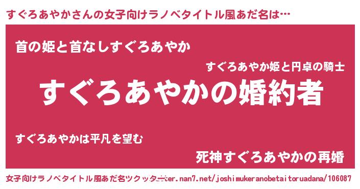 | 胡散臭い通販商品みたいなあだ名 | 『運命の人と巡り会える高級そうな壺…その名も「すぐろあやか」』 |