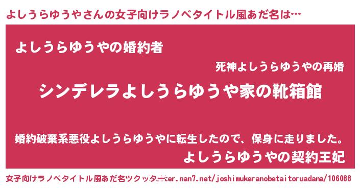 | 胡散臭い通販商品みたいなあだ名 | 『幸せが訪れる高級そうな壺…その名も「よしうらゆうや」』 |