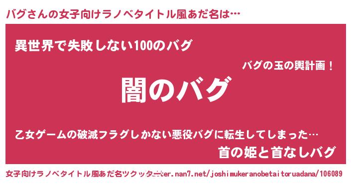 | 男性向けラノベタイトル風あだ名 | 『Re:バグから始める異世界生活』 |