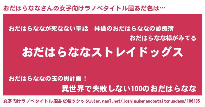 | 男性向けラノベタイトル風あだ名 | 『Re:おだはらななから始める異世界生活』 |