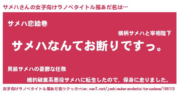 | 男性向けラノベタイトル風あだ名 | 『魔法科高校のサメハ』 |
