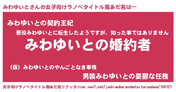 | ファンタジー風あだ名 | 『エターナルミワユイトー』『ミワフェル』 |
