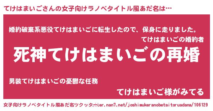 | 欧米人風あだ名 | 『ダニエルてけはまいご』 |