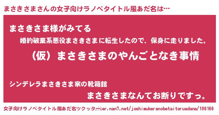 | 男性向けラノベタイトル風あだ名 | 『まさきさまの憂鬱』『緋弾のマサキサマ』 |