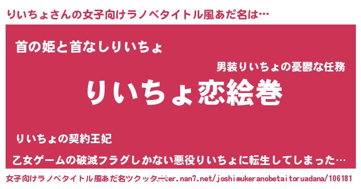 | ヘコむあだ名 | 『りいちょ(笑)』『豆乳』 |