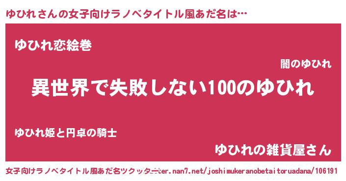 | 胡散臭い通販商品みたいなあだ名 | 『絶対に幸福をもたらす健康食品…その名も「ゆひれ」』 |
