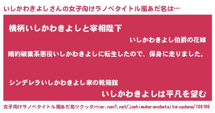 | 男性向けラノベタイトル風あだ名 | 『転生したらいしかわきよしだった件』 |