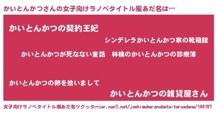 | 男性向けラノベタイトル風あだ名 | 『魔弾の王とかいとんかつ』 |