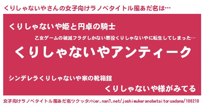 | 胡散臭い通販商品みたいなあだ名 | 『テレビで話題の高麗人参…その名も「くりしゃないや」』 |