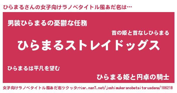 | 男性向けラノベタイトル風あだ名 | 『Re:ひらまるから始める異世界生活』 |