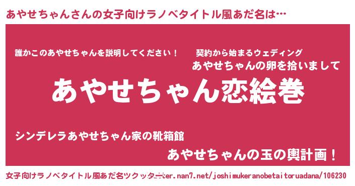 | 男性向けラノベタイトル風あだ名 | 『ノーゲーム・ノーアヤセチャン』 |