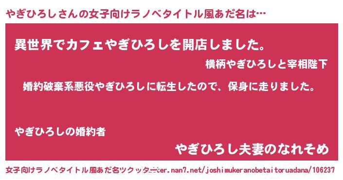 | 男性向けラノベタイトル風あだ名 | 『ヤギヒロシスレイヤー』 |