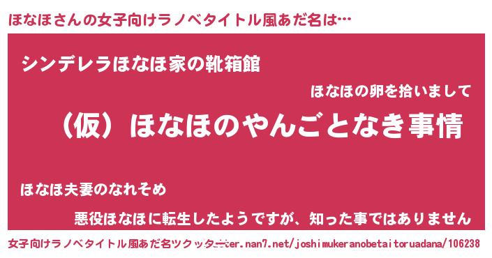 | 男性向けラノベタイトル風あだ名 | 『ほなほの憂鬱』『緋弾のホナホ』 |