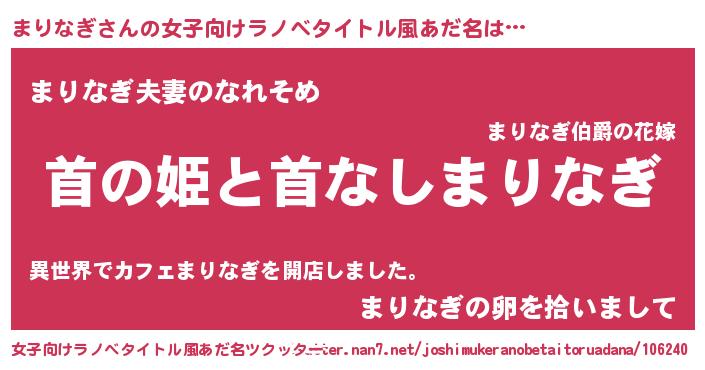 | 男性向けラノベタイトル風あだ名 | 『はたらくまりなぎさま!』 |