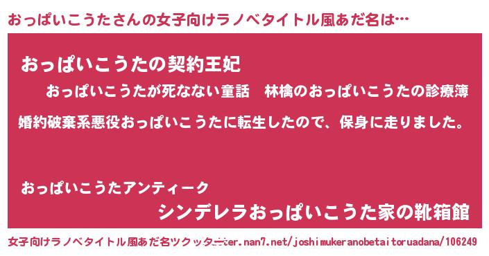 | 男性向けラノベタイトル風あだ名 | 『転生したらおっぱいこうただった件』 |