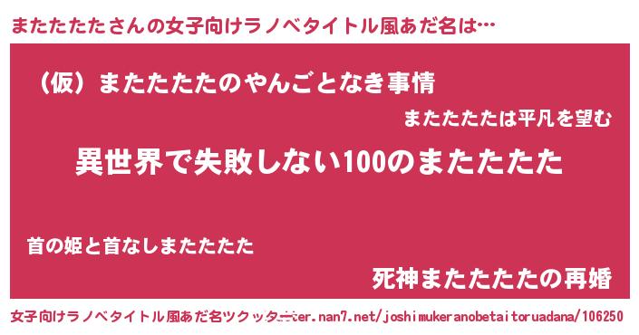 | 男性向けラノベタイトル風あだ名 | 『またたたたという概念が存在しない退屈な世界 』 |