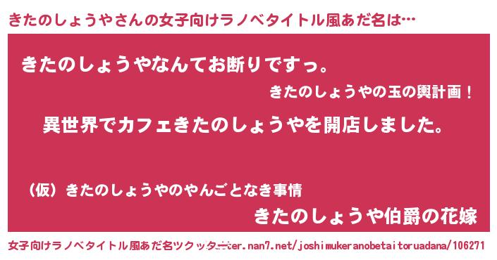 | ヘコむあだ名 | 『きたのしょうや(遠い目)』『酢こんぶ』 |