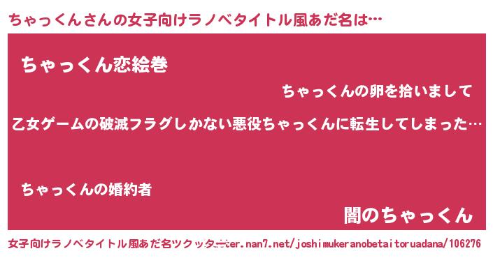 | 男性向けラノベタイトル風あだ名 | 『この素晴らしい世界にちゃっくんを!』 |
