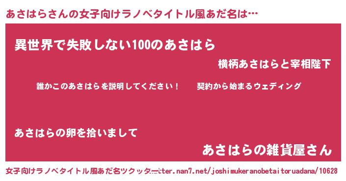 | 胡散臭い通販商品みたいなあだ名 | 『億万長者になれるブレスレット…その名も「あさはら」』 |