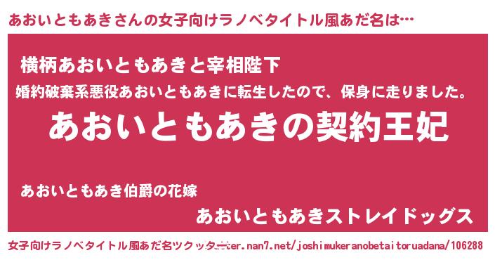 | 男性向けラノベタイトル風あだ名 | 『あおいともあきという概念が存在しない退屈な世界 』 |