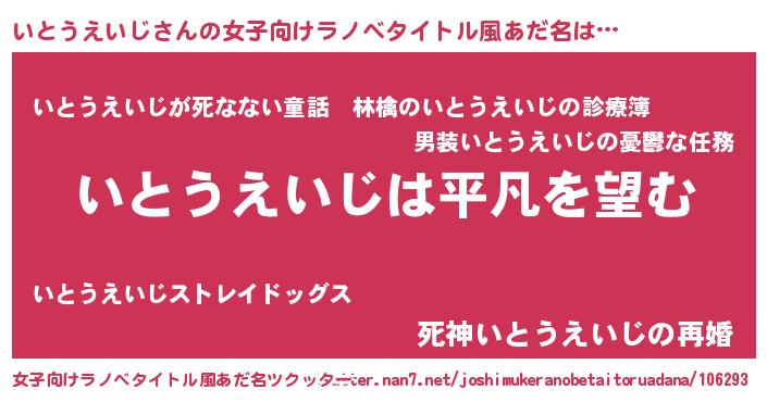 | 男性向けラノベタイトル風あだ名 | 『ダンジョンにいとうえいじを求めるのは間違っているだろうか』 |