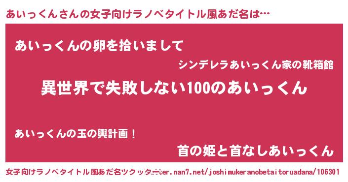 | 男性向けラノベタイトル風あだ名 | 『あいっくんという概念が存在しない退屈な世界 』 |