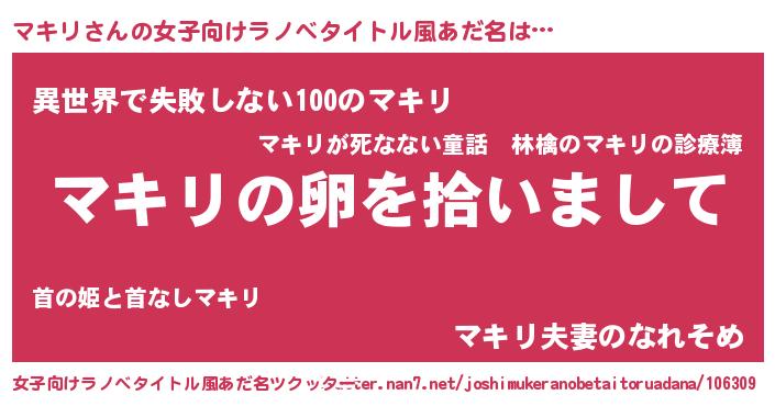 | 胡散臭い通販商品みたいなあだ名 | 『伝統あるサプリメント…その名も「マキリ」』 |