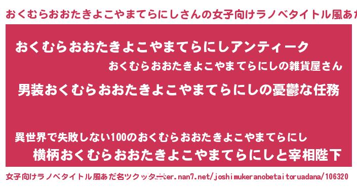 | 意味不明あだ名 | 『自称おくむらおおたきよこやまてらにし』 |