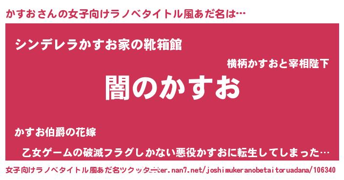 | 男性向けラノベタイトル風あだ名 | 『Re:かすおから始める異世界生活』 |