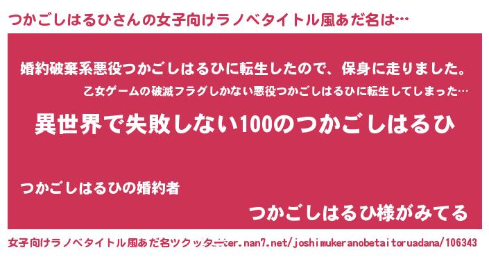 | ヘコむあだ名 | 『つかごしはるひ(笑)』『つかを』 |