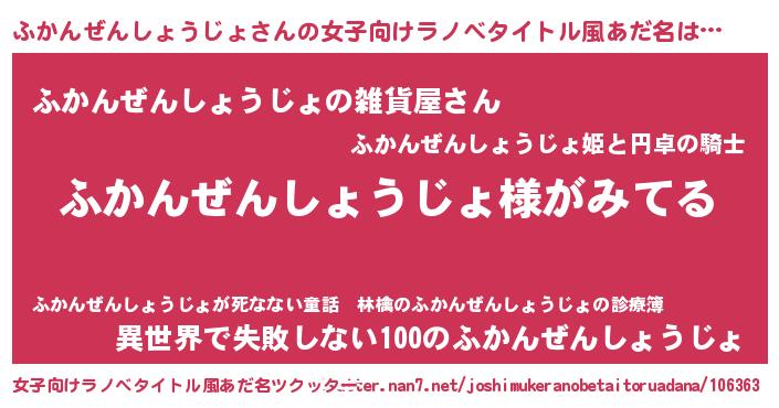 | 男性向けラノベタイトル風あだ名 | 『ふかんぜんしょうじょの嫁は女の子じゃないと思った?』 |