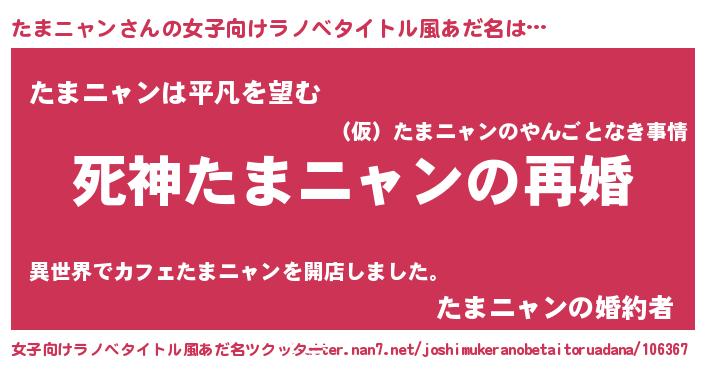 | ヒーロー風カッコイイあだ名 | 『慈愛の使者たまニャン』『暗黒騎士タマ』 |
