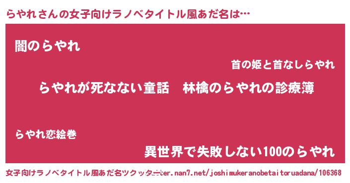 | 意味不明あだ名 | 『住所不定無職らやれ(1歳)』『自称らやれ』 |