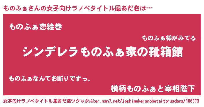 | 男性向けラノベタイトル風あだ名 | 『冴えないものふぁの育てかた』 |