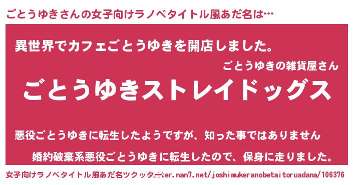 | 男性向けラノベタイトル風あだ名 | 『Re:ごとうゆきから始める異世界生活』 |