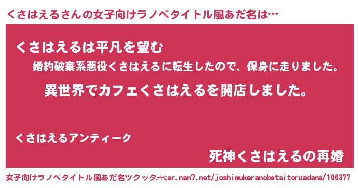 | 胡散臭い通販商品みたいなあだ名 | 『前代未聞の水素水…その名も「くさはえる」』 |