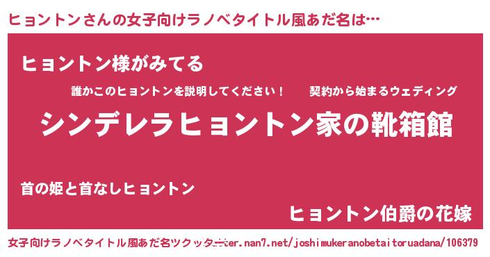 | 胡散臭い通販商品みたいなあだ名 | 『信頼と実績のサプリメント…その名も「ヒョントン」』 |
