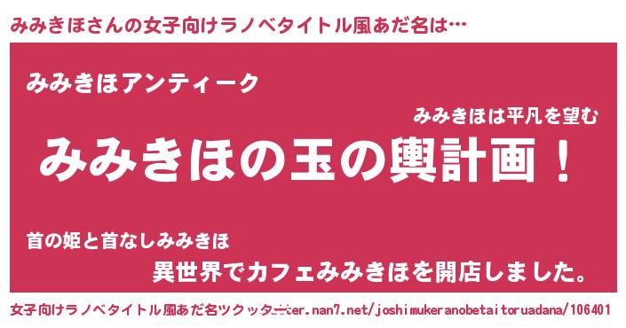 | ヘコむあだ名 | 『みみきほ(苦笑)』『みみっ子』 |
