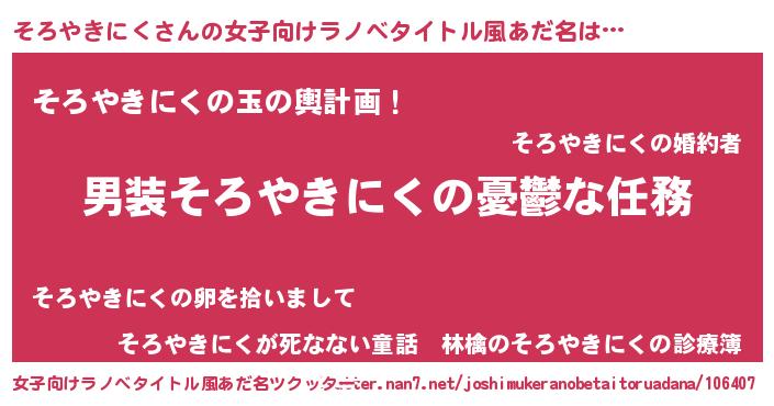 | 男性向けラノベタイトル風あだ名 | 『冴えないそろやきにくの育てかた』 |
