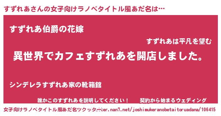 | 男性向けラノベタイトル風あだ名 | 『誰もが恐れるあのすずれあが、ぼくの専属メイドになるようです。』 |