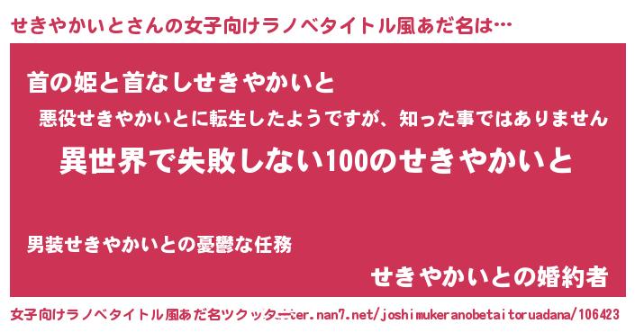 | 意味不明あだ名 | 『永久保存せきやかいと』 |