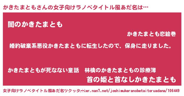 | 男性向けラノベタイトル風あだ名 | 『カキタマトモスレイヤー』 |