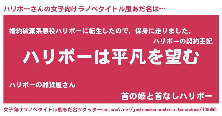 | 意味不明あだ名 | 『とにかく怪しいハリボー』 |