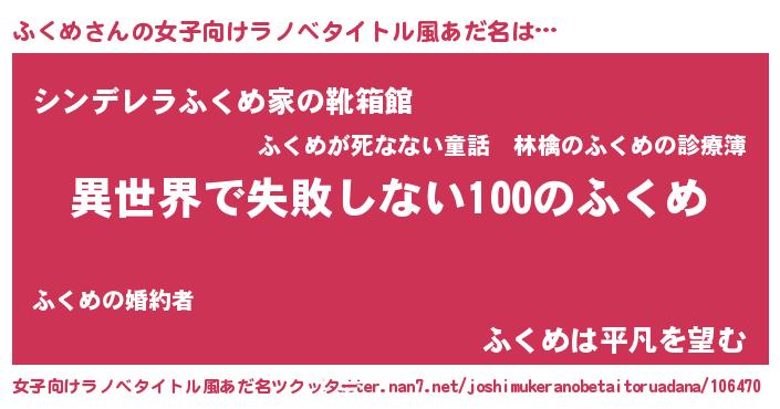 | 男性向けラノベタイトル風あだ名 | 『ふくめという概念が存在しない退屈な世界 』 |