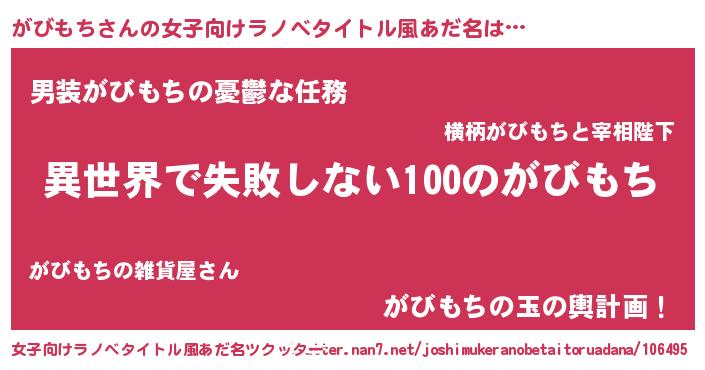 | 胡散臭い通販商品みたいなあだ名 | 『絶対に幸福をもたらす健康食品…その名も「がびもち」』 |