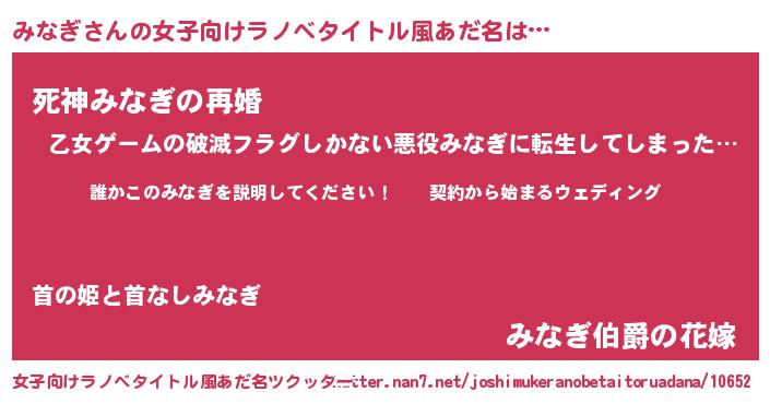 | 男性向けラノベタイトル風あだ名 | 『ミナギアートオンライン』 |