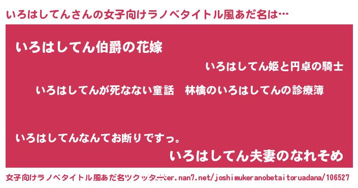 | 男性向けラノベタイトル風あだ名 | 『魔弾の王といろはしてん』 |