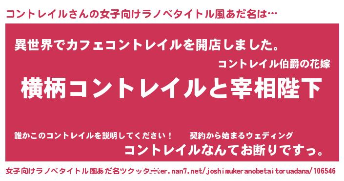 | 男性向けラノベタイトル風あだ名 | 『コントレイルに滅ぼされるだけの簡単なお仕事です』 |