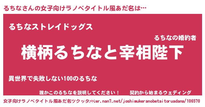 | 男性向けラノベタイトル風あだ名 | 『るちなに滅ぼされるだけの簡単なお仕事です』 |