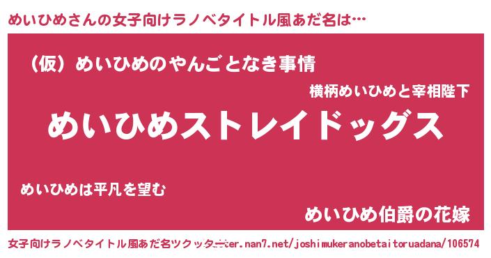 | 肩書あだ名 | 『めいひめ総統』『めいひめ御曹司』 |